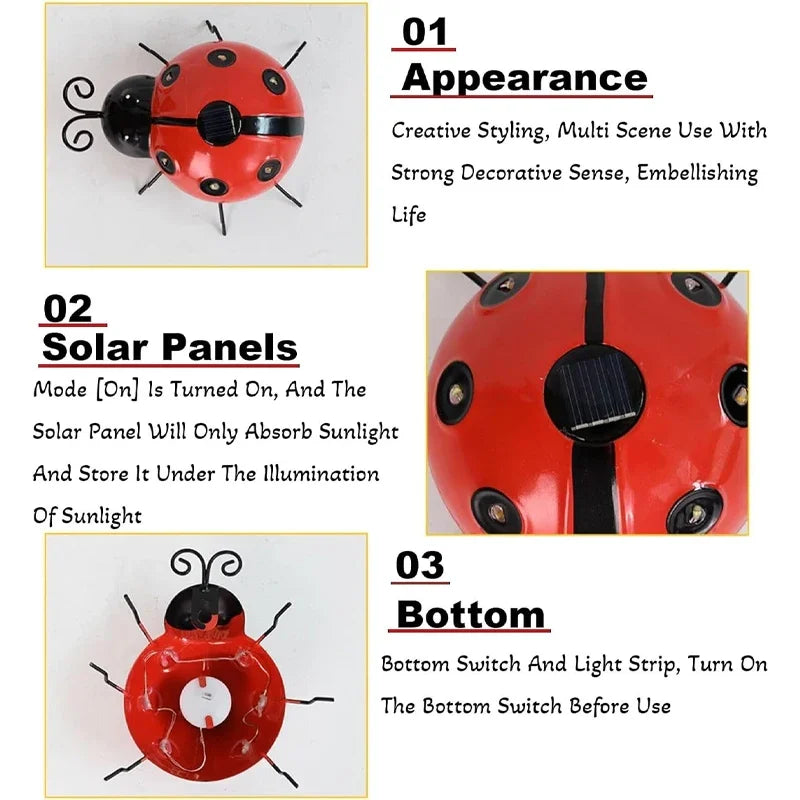 Solar Ladybug Light Outdoor Waterproof LED Garden Decor Wall Hanging Lawn Pathway Landscape Lighting for Yard Patio Statue