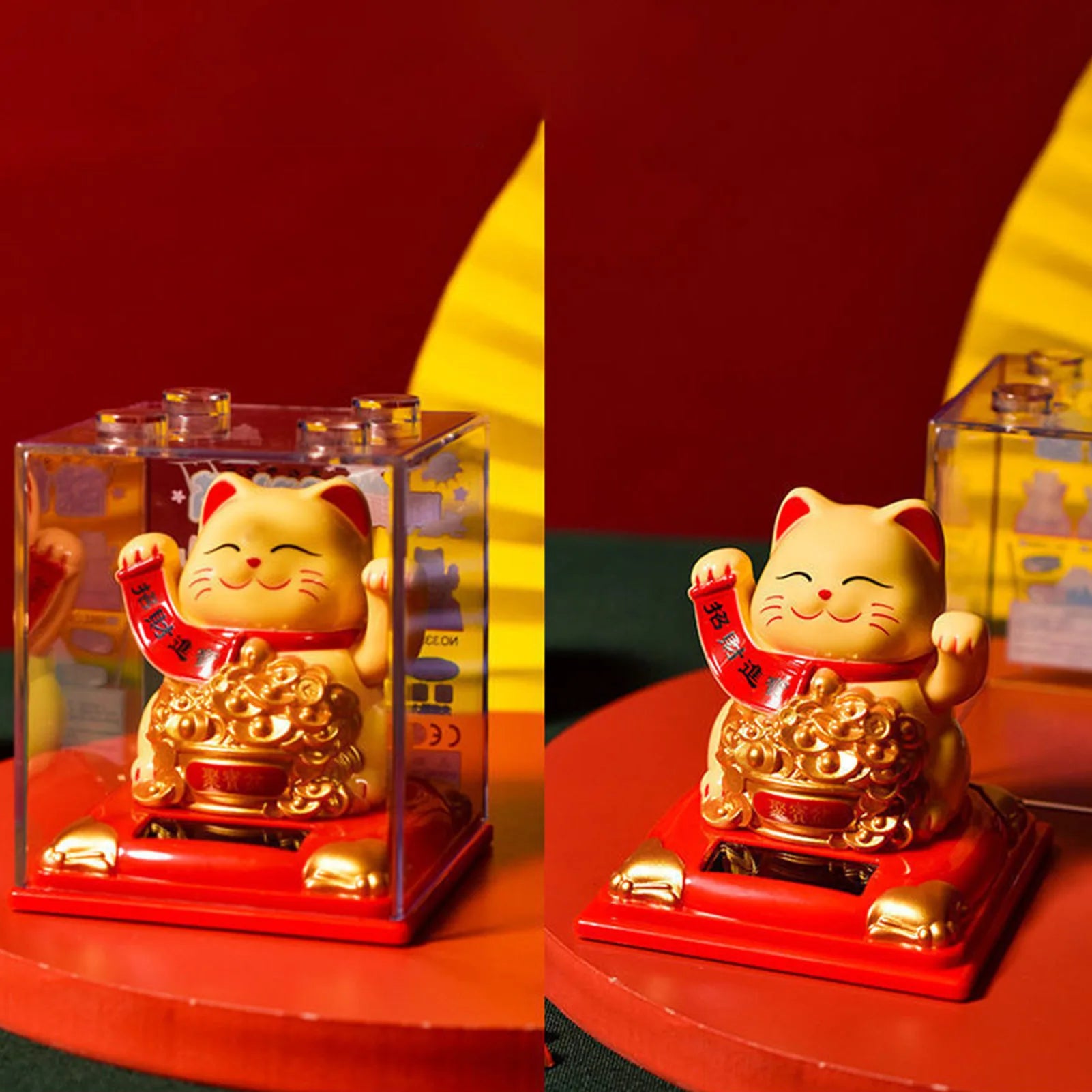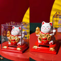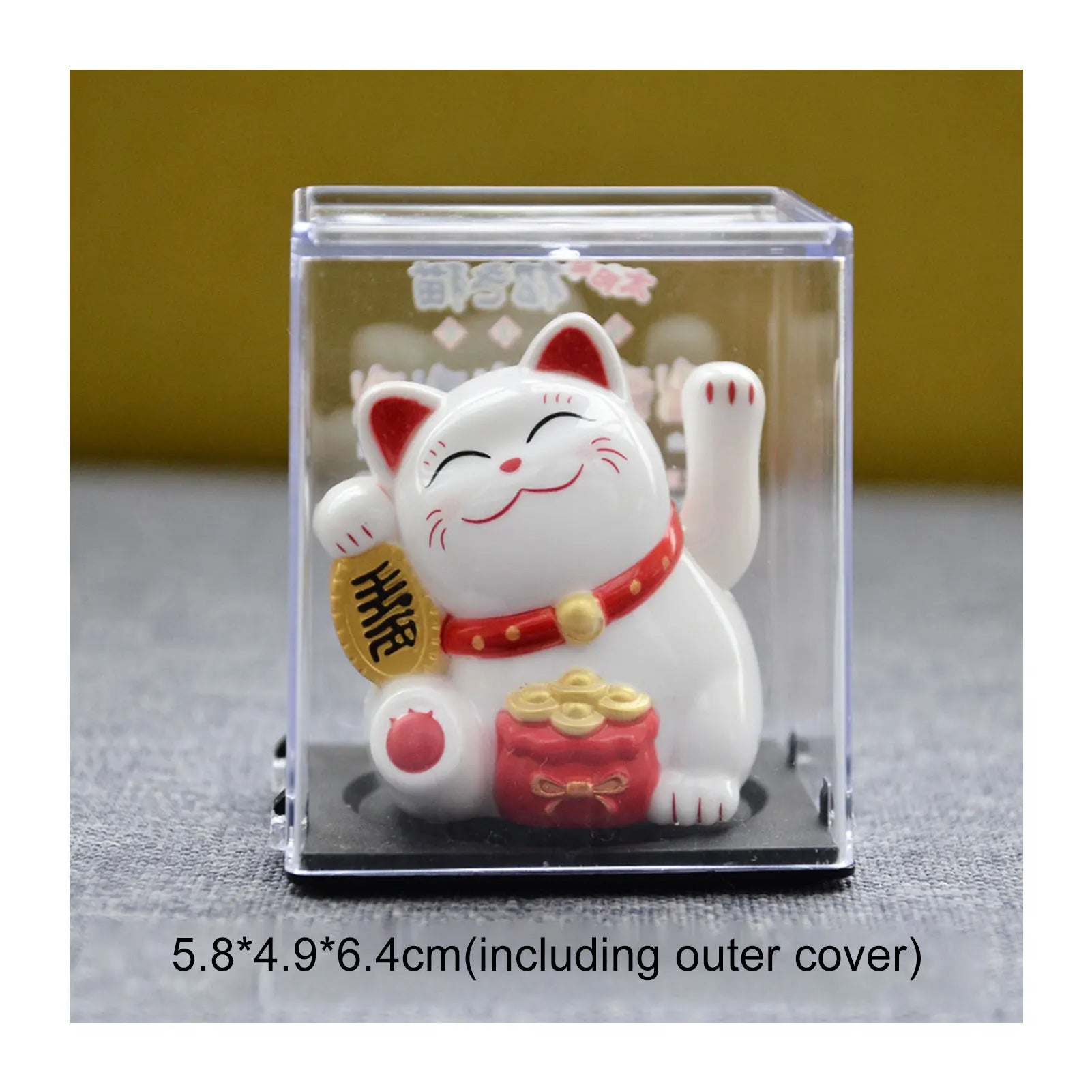 Solar Powered Maneki Neko Lucky Cat Welcoming Chinese Lucky Cat Waving Hand Beckoning Fortune Cat Figurines For Home Decor