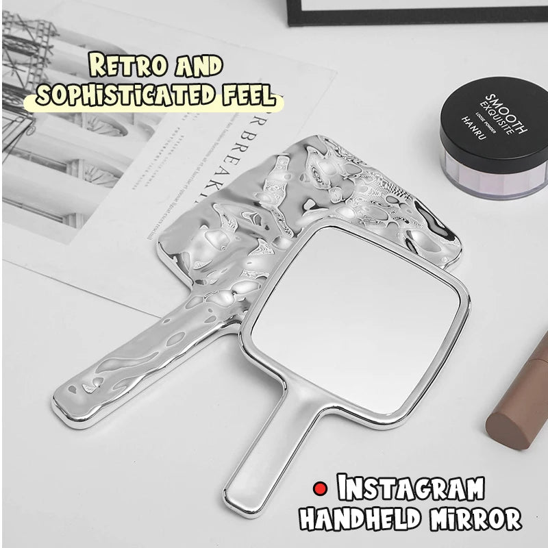 Square Handheld Makeup Mirror Liquid Shape Vanity Mirror with Handle Hand Mirror SPA Salon Compact Mirrors for Eyelash Extension
