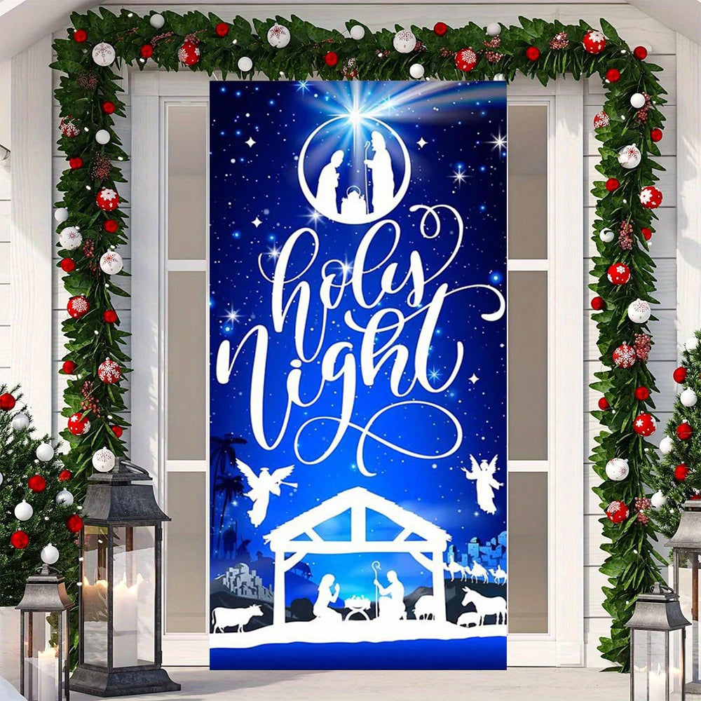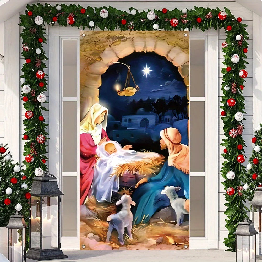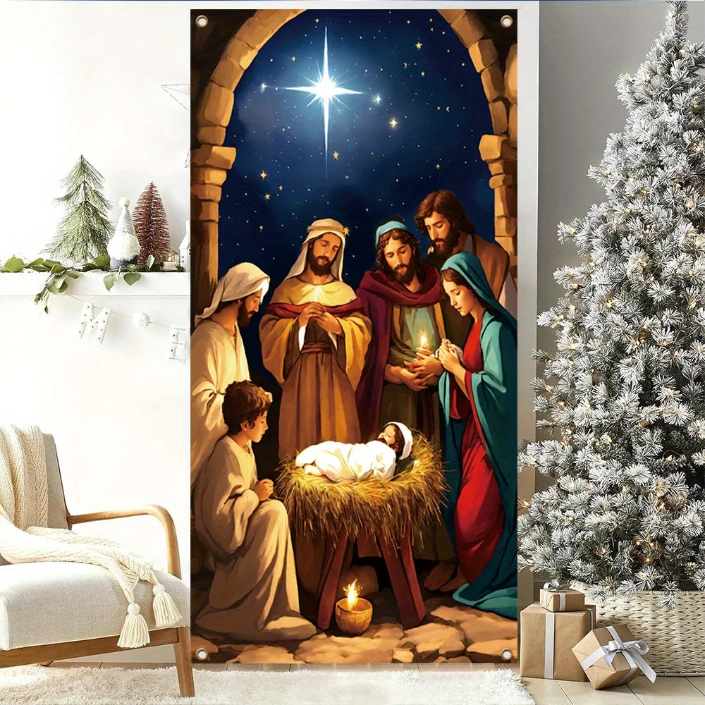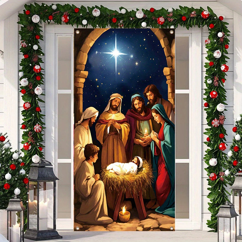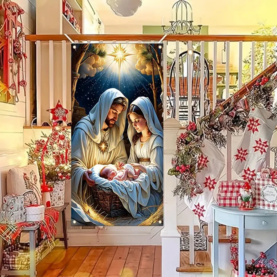 The Birth Scene of Jesus Background Christmas New Year Bright Stars Banner Holy Family Home Religious Wall Decoration Door Cover