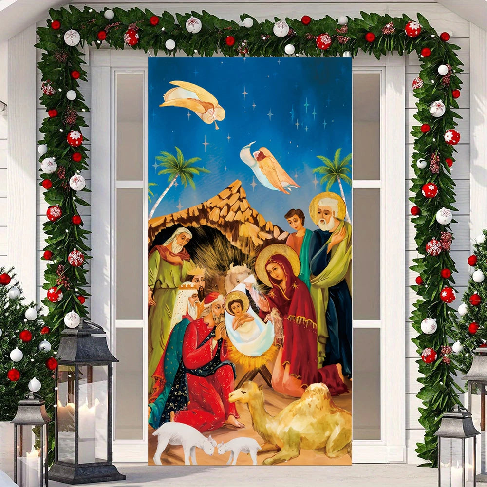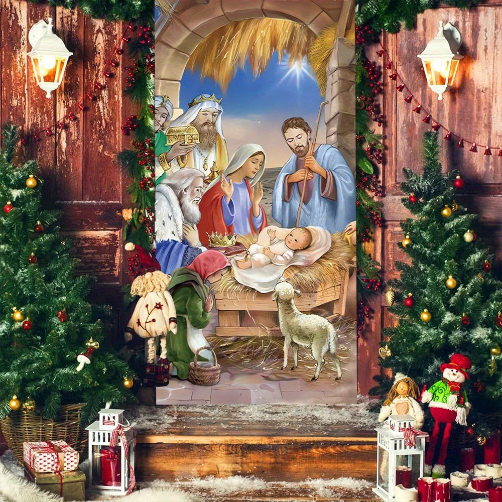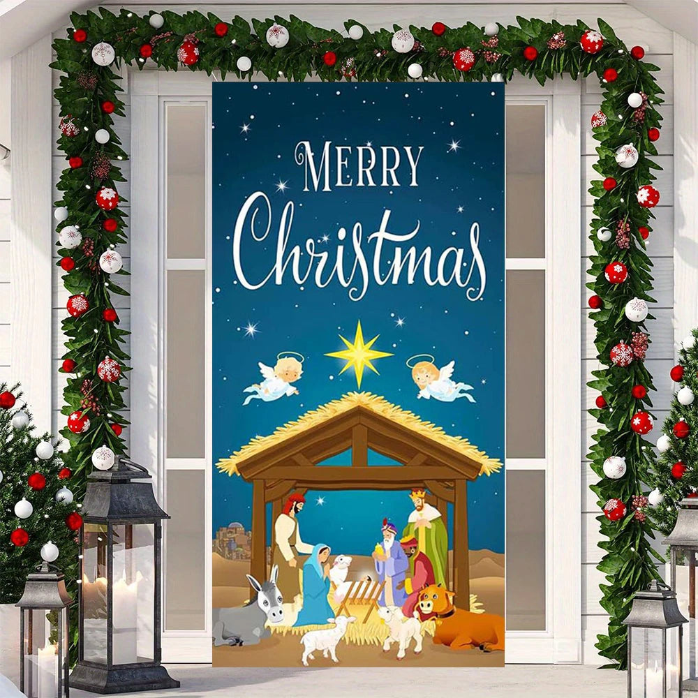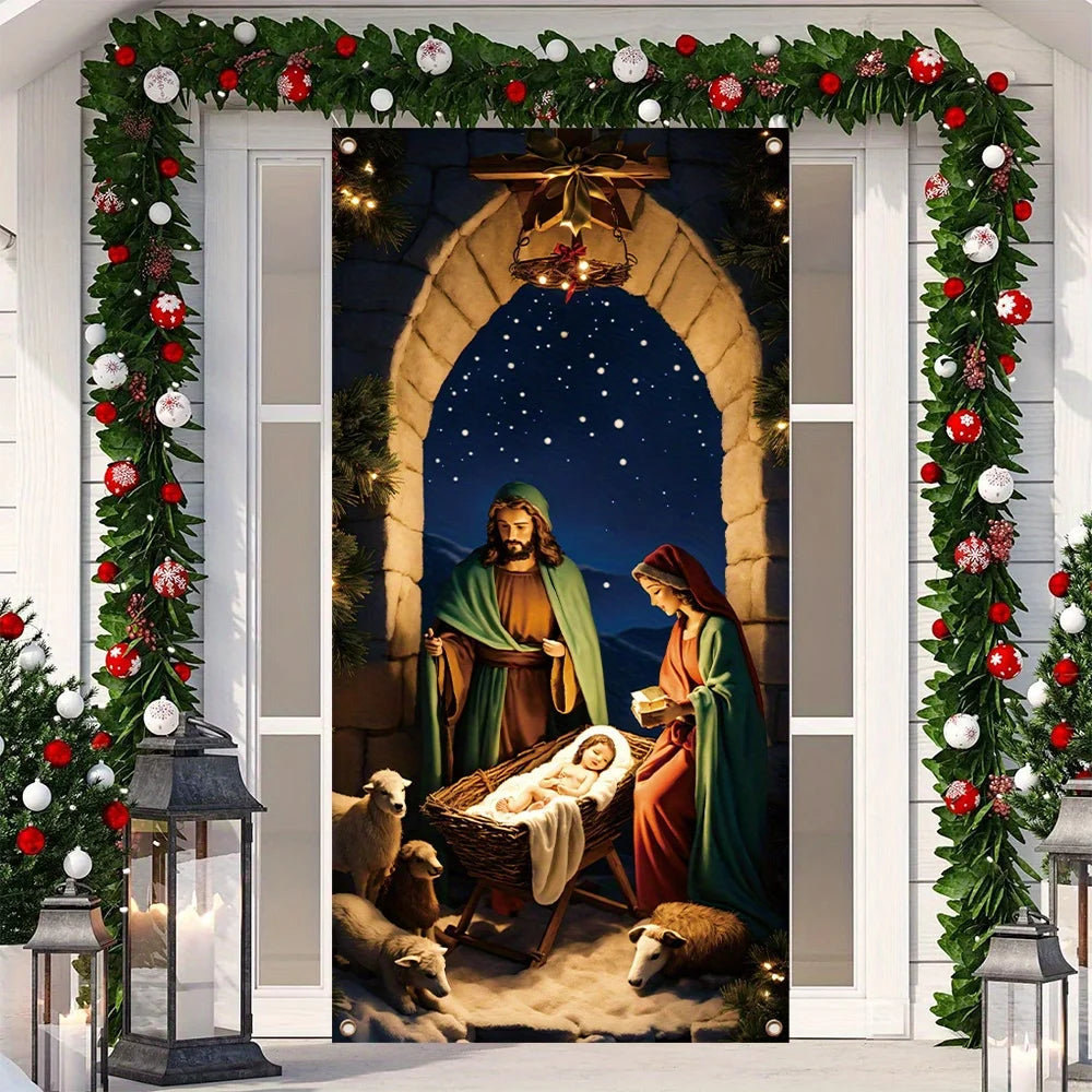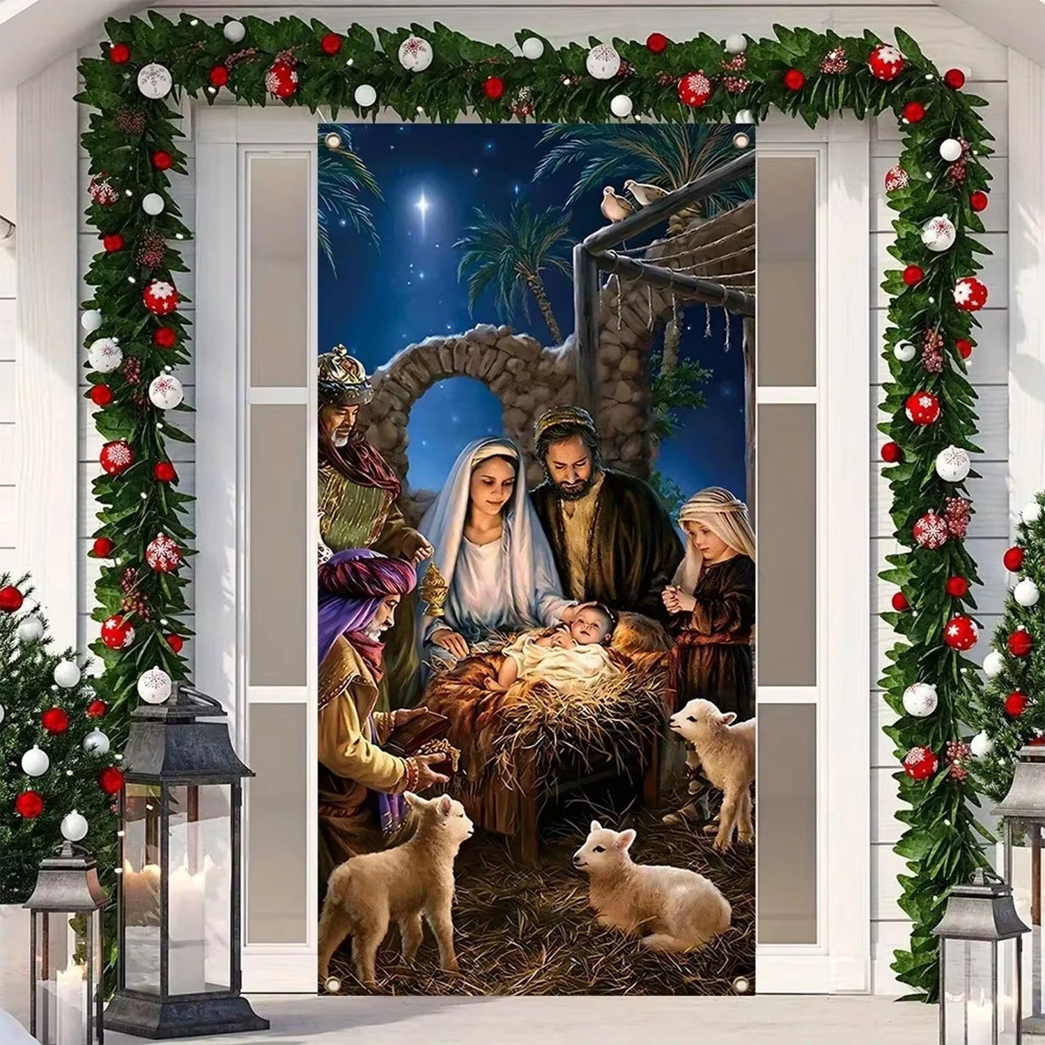 The Birth Scene of Jesus Background Christmas New Year Bright Stars Banner Holy Family Home Religious Wall Decoration Door Cover