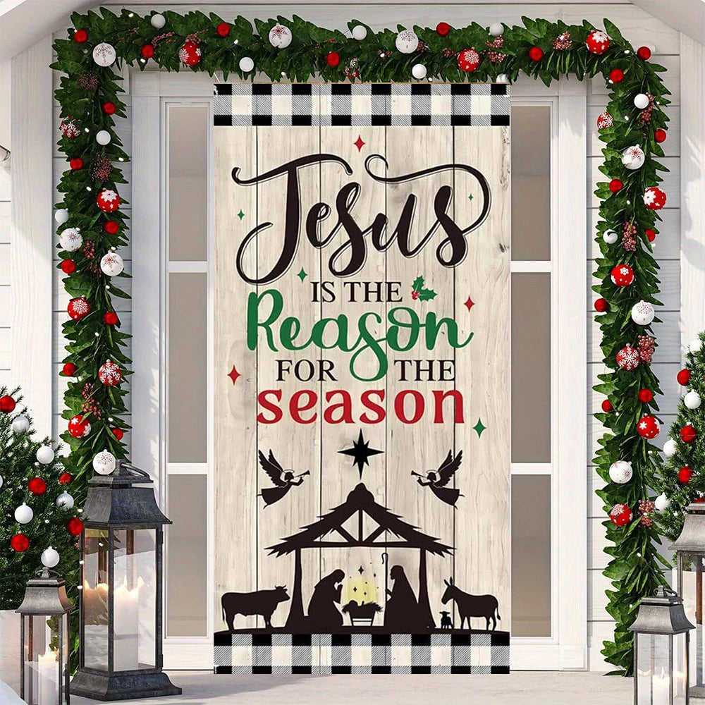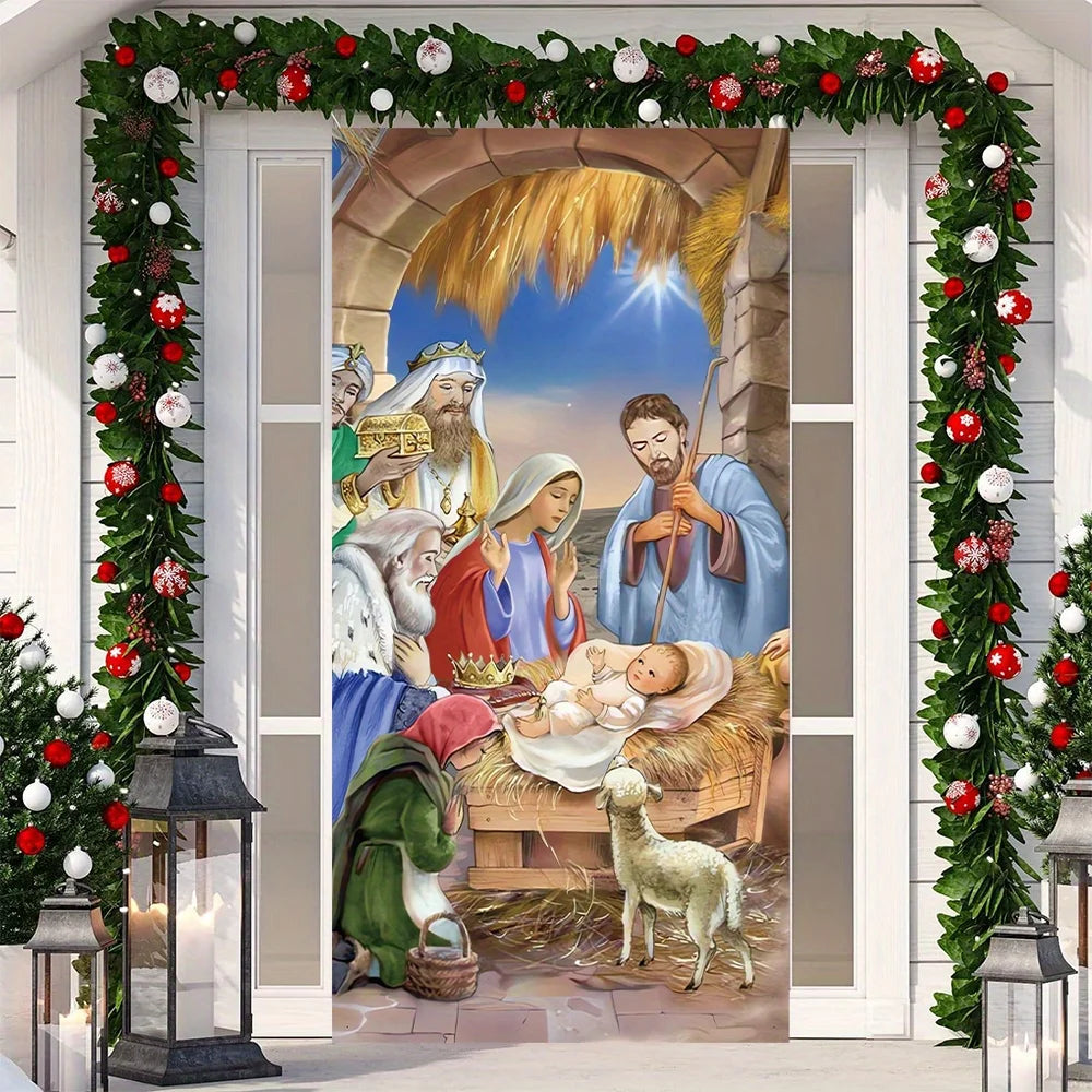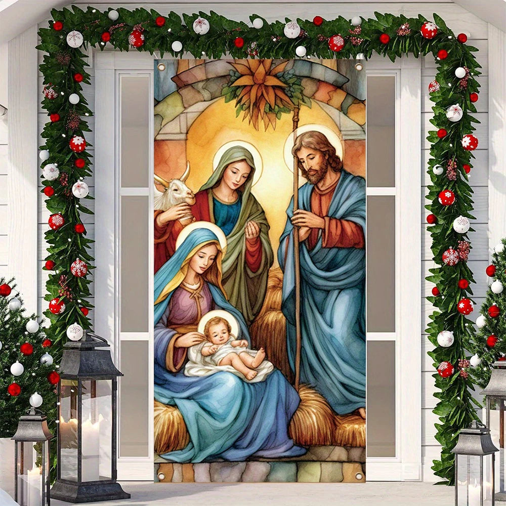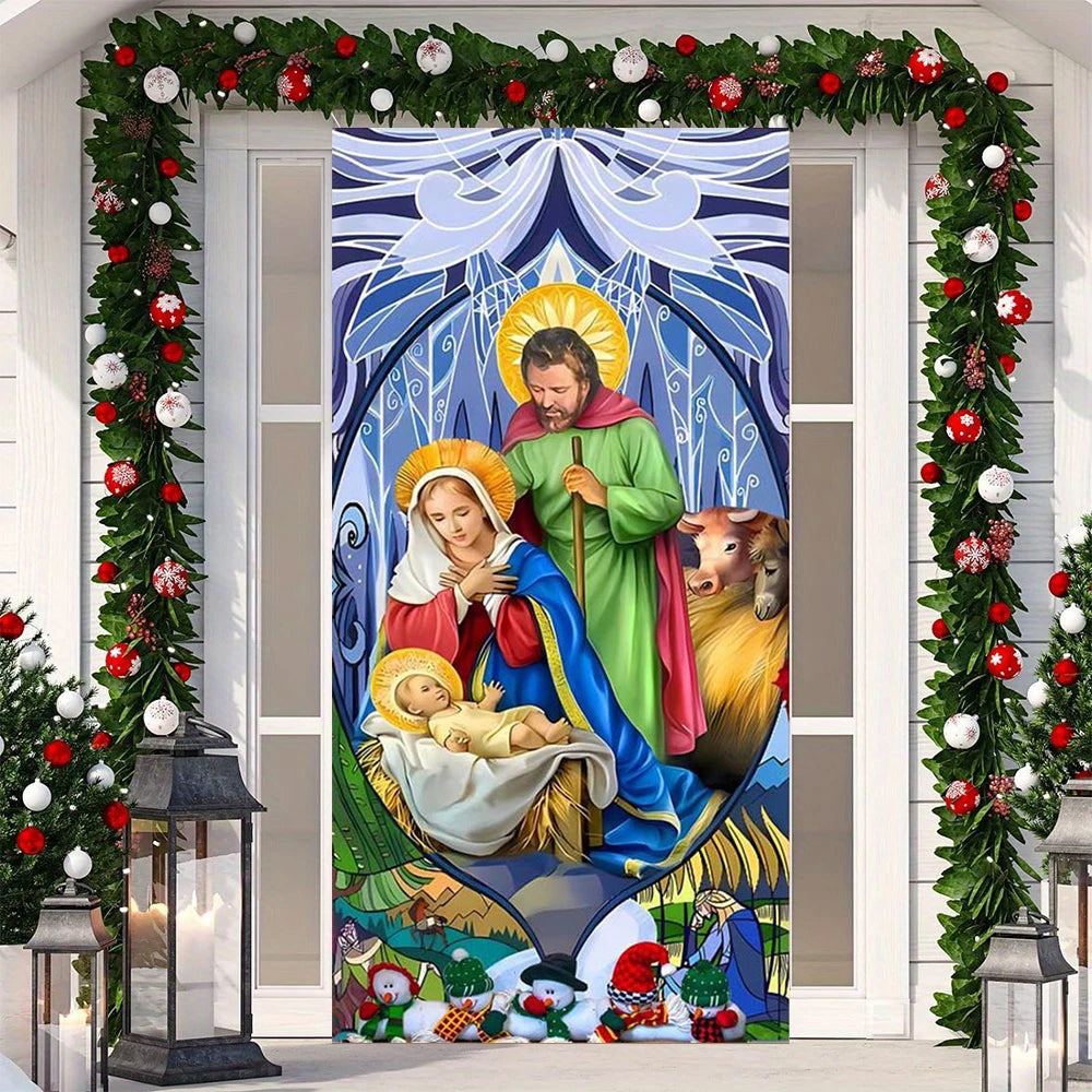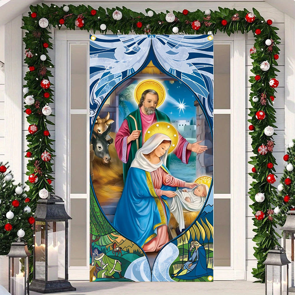 The Birth Scene of Jesus Background Christmas New Year Bright Stars Banner Holy Family Home Religious Wall Decoration Door Cover