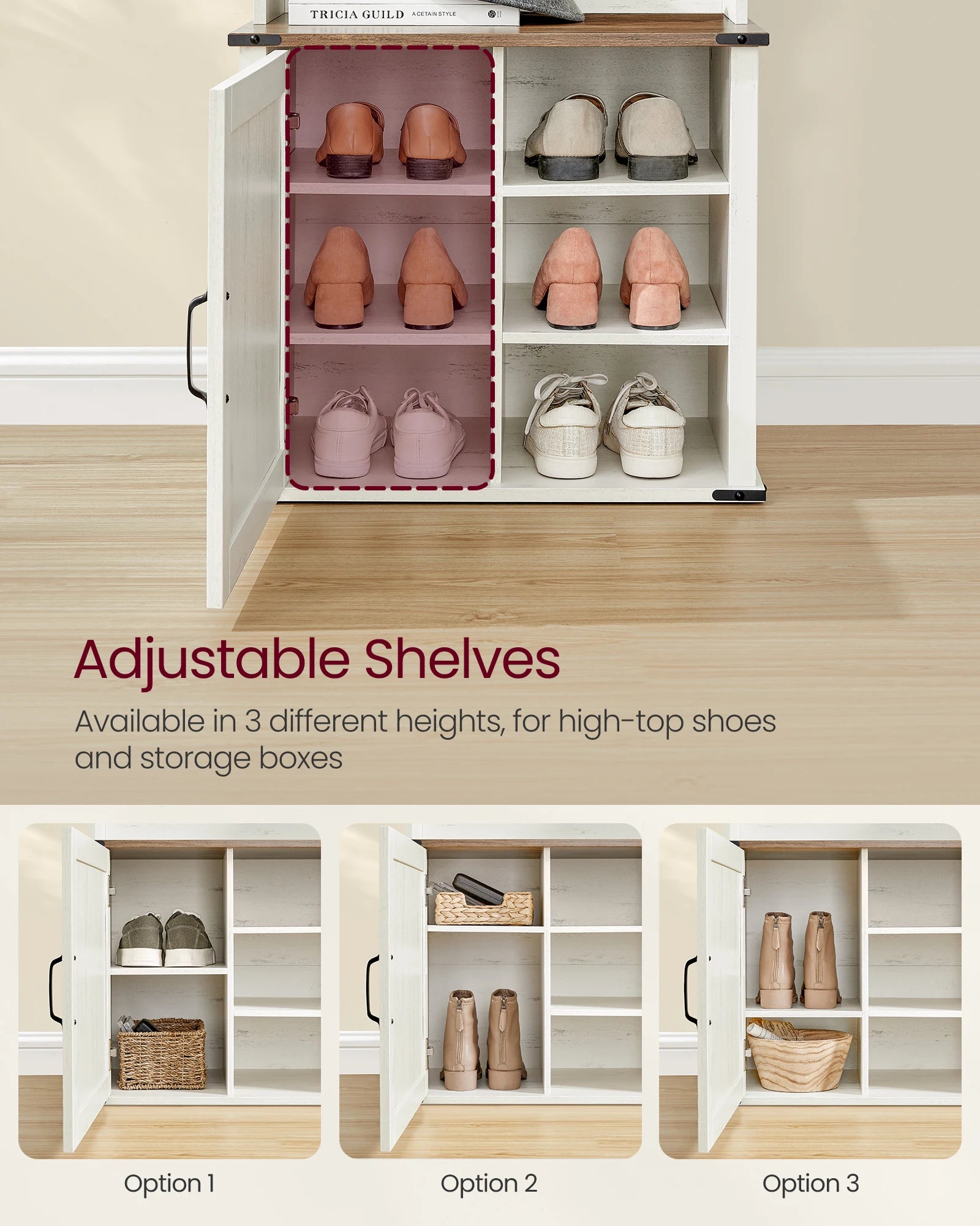 VASAGLE Hall Tree with Bench and Shoe Storage, Coat Rack with Shoe Bench, Entryway Furniture, 3 Tri-Hooks, Door with Handle