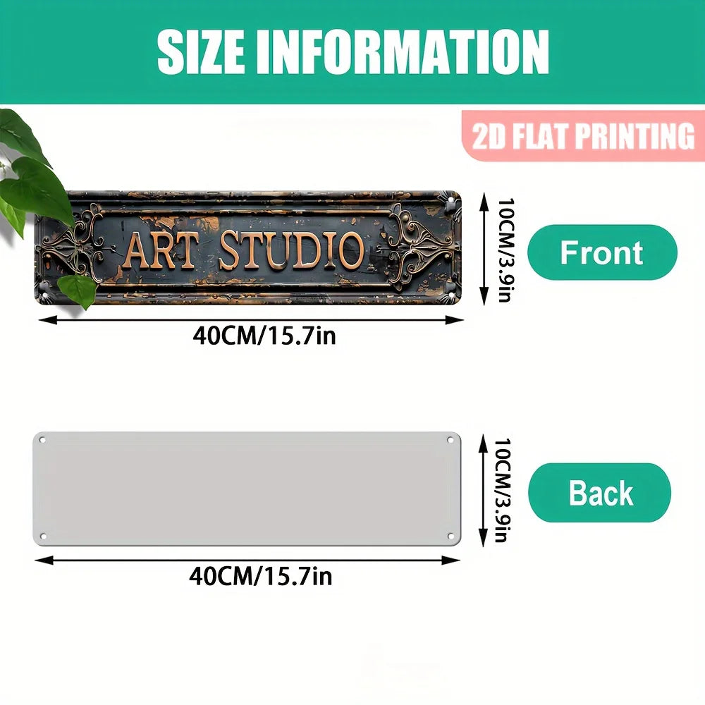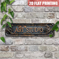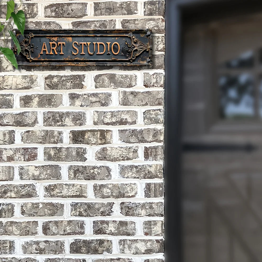 Vintage "Art Studio" Metal Sign , Rustic Black with Ornate Design, Ideal for Home & Office Wall Deco