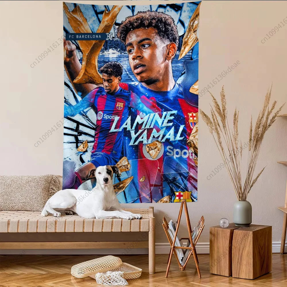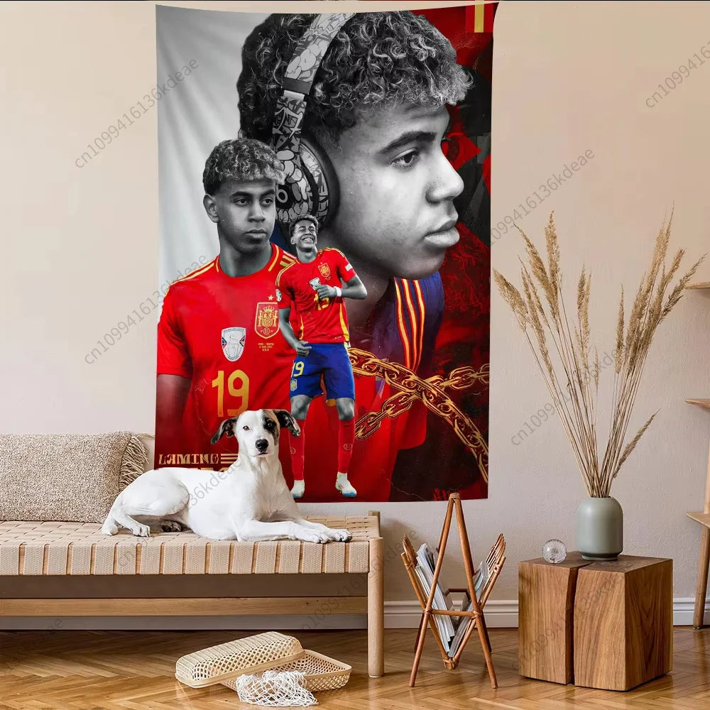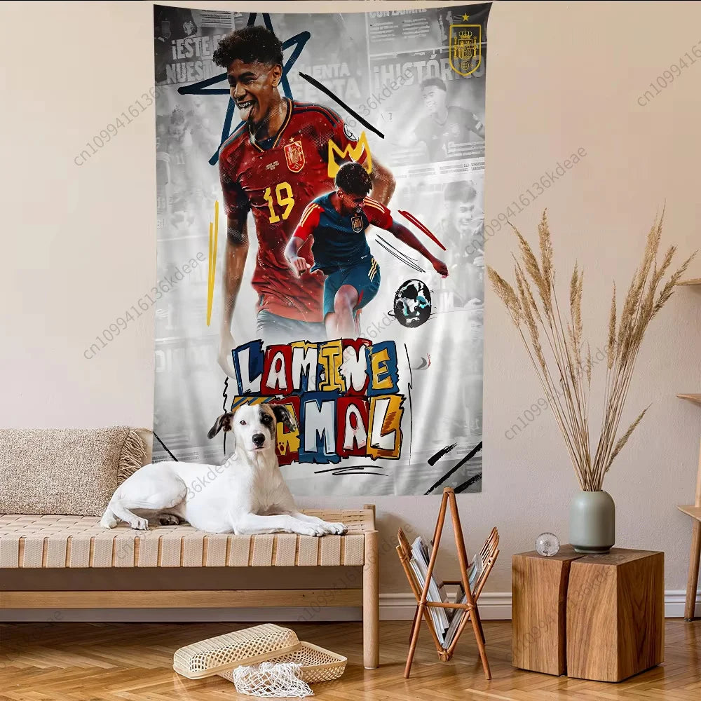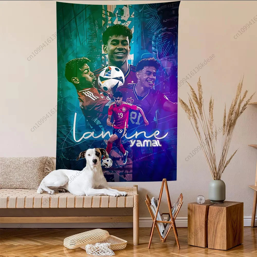 Wall Tapestry Decor L-Lamine Football Star Y-Yamal Anime Tapestry Flags Bedroom Dorm Wall Hanging Background Cloth Festival Gift