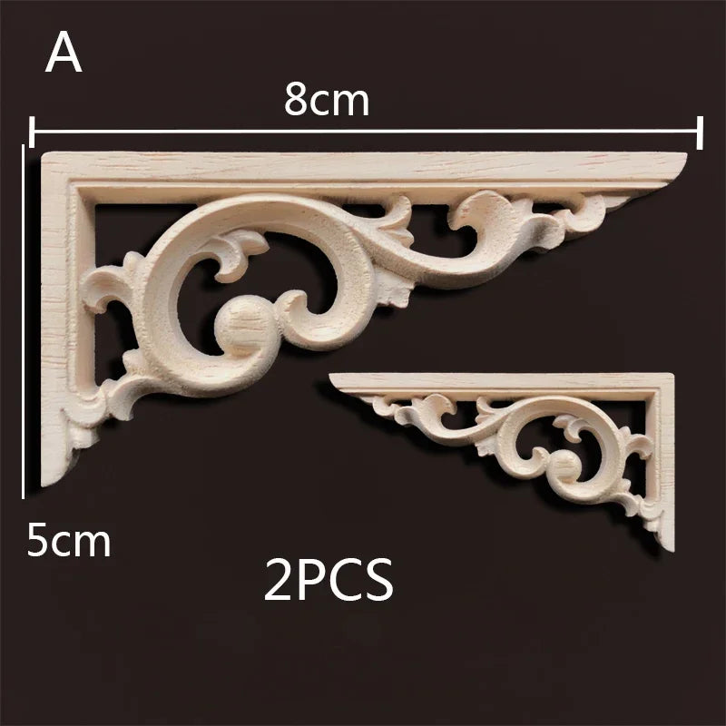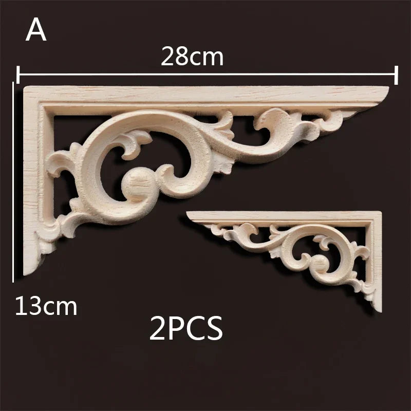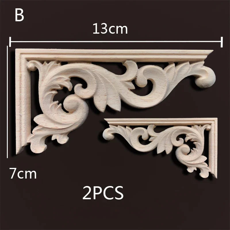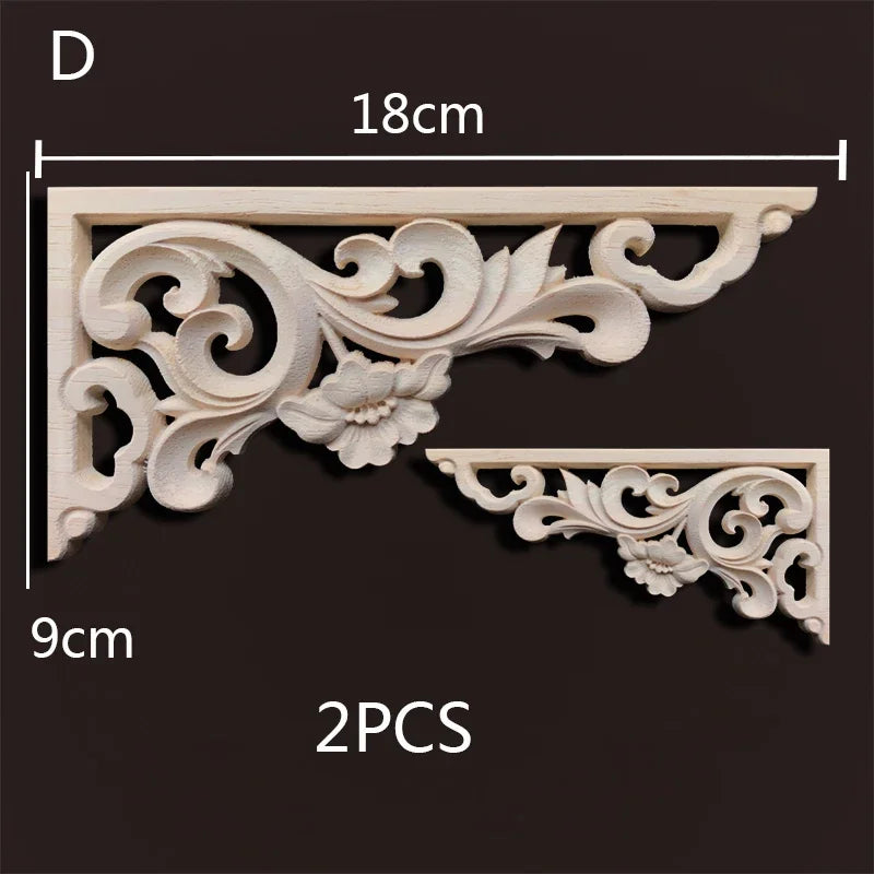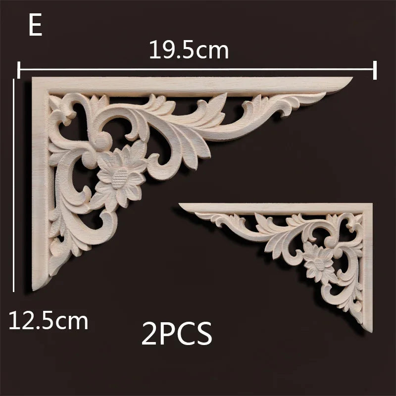 Wood Corner Joint Onlay Applique Wood Decals for Furniture Home Decoration Luxury Unique Natural Floral Wood Carved Figurines